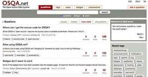 OSQA is an Open Source Q&A System written using Django. Users can ask and answer questions, comment and vote for the questions of others and their answers. OSQA is an Open Source Q&A System written using Django. Users can ask and answer questions, comment and vote for the questions of others and their answers. Both questions and answers can be revised and improved. Questions can be tagged with the relevant keywords.